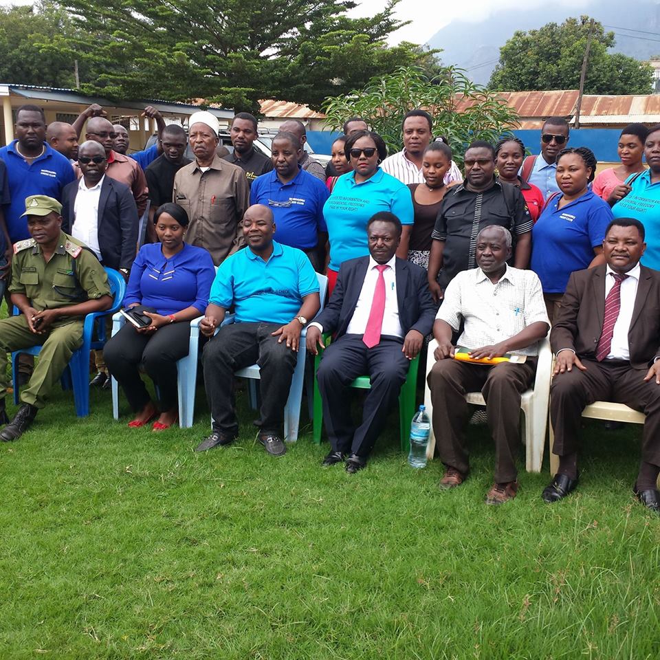 Mgeni Rasmi Katibu Tawala wa Mkoa Bwana Cliford Tandari wa Tatu kutoka kulia na Mwenyekiti wa Morogoro Press Club Bwana Nickson Mkilanye wa tatu kutoka kushoto katika Maadhimisho ya Uhuru wa Vyombo vya habari, Kimkoa yaliyofanyika leo tareh 8/5/2018. Kauli mbiu "UHURU WA HABARI NI CHACHU YA UWAJIBIKAJI KWA MAENDELEO YA MKOA"
